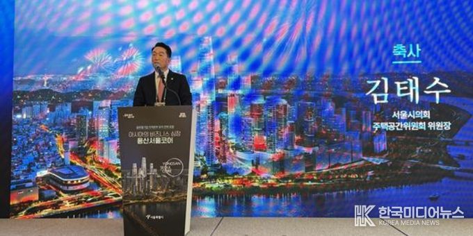 [ 한국미디어뉴스 이원영 기자 ] 서울특별시의회 주택공간위원회 김태수 위원장(국민의힘, 성북구 제4선거구)은 3월 27일 오후 2시, 전쟁기념관 피스앤파크(아주르홀, 4층)에서 개최된 '아시아의 비즈니스 심장, 용산서울코어 : 글로벌 기업 지역본부 유치 전략 포럼'에 참석하여 축사를 통해 용산 국제업무지구의 전략적 가치를 강조하고 서울특별시의회의 적극 지원 의지를 밝혔다.