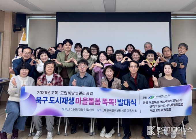 [ 한국미디어뉴스 이보영 기자 ] 대구 북구청은 보건복지부와 대구광역시가 주관하는'2026년 고독·고립 예방 및 관리 사업'의 일환으로 도시재생 사업지역 주민조직과 함께하는‘북구 도시재생 마을돌봄 똑똑!’사업을 대구 최초로 추진한다.