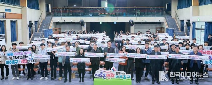 [ 한국미디어뉴스 최치남 기자 ] 인천 미추홀구는 1일 2026년도 2분기 직원 조회를 열고 ‘인천해사국제상사법원(이하 해사법원) 미추홀구 유치’를 위한 캠페인을 개최했다.