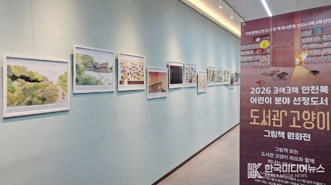 [ 한국미디어뉴스 이원영 기자 ] 인천광역시교육청신트리도서관은 인천도서관이 추진하는 '2026 3색3책 인천북 ‘도서관 고양이’ 원화 순회전시' 공모 사업에 선정되어, 오는 4월 1일부터 26일까지 원화 전시를 운영한다.