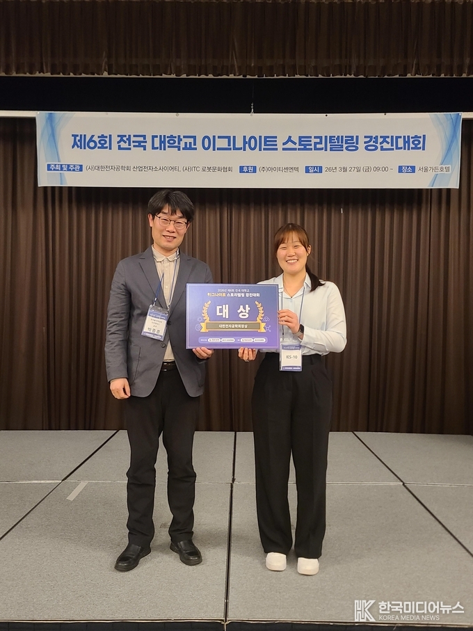 [ 한국미디어뉴스 기동취재 기자 ] 한국폴리텍대학 인천캠퍼스(이하 인천폴리텍) 메카트로닉스공학과 박선아 학생이 지난 27일 서울 마포가든호텔에서 열린 ‘2026년 제6회 전국 대학교 이그나이트 스토리텔링 경진대회’에서 대상을 수상했다.