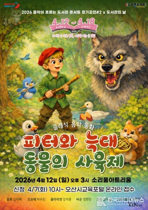 [ 한국미디어뉴스 이보영 기자 ] 오산시 소리울도서관은 오는 4월 12일 오후 3시 소리울아트리움에서 ‘2026 도서관의 날’을 기념해 온 가족이 클래식의 매력을 즐길 수 있는 '음악이 흐르는 도서관 콘서트'를 개최한다.