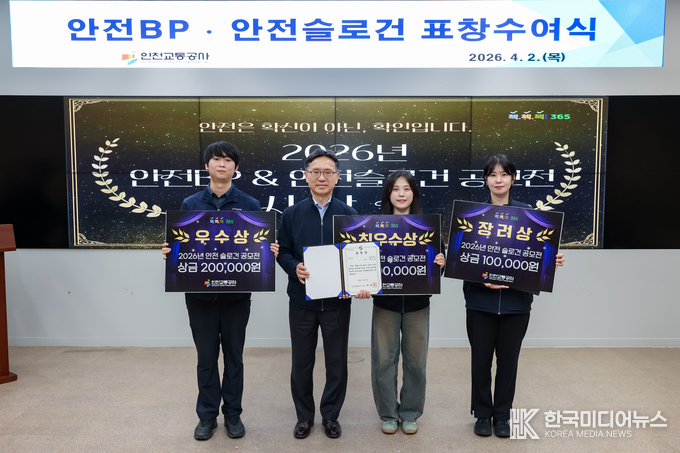 [ 한국미디어뉴스 이원영 기자 ] 인천교통공사(사장 최정규)는 ‘안전문화 내재화’ 추진의 일환으로 '2026 안전 슬로건 공모전'을 실시하고 우수작을 선정했다고 2일 밝혔다.