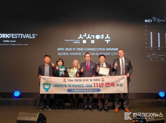 [ 한국미디어뉴스 이종철 기자 ] 여수시는 2일 오전 서울 롯데호텔에서 열린 ‘2026 대한민국 국가브랜드 대상’에서 11년 연속 국제해양관광휴양도시 부문 대상을 수상했다고 밝혔다.