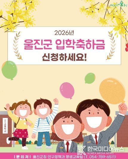 [ 한국미디어뉴스 이보영 기자 ] 울진군은 학부모의 교육비 부담을 경감하고 보편적 교육복지를 실현하기 위해‘2026학년도 초·중·고등학교 신입생 입학축하금’1차분을 4월 3일 지급했다.