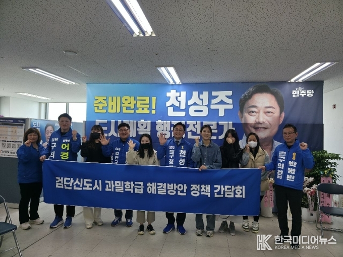 [ 한국미디어뉴스 이기선 기자 ] 천성주 검단구청장 예비후보가 검단신도시의 최대 현안인 과밀학급 문제와 아이들의 안전한 통학로 확보를 위해 아파트 입주예정자와 정책 간담회를 개최했다. 천성주 예비후보는 3일 검단신도시, e편한세상검단웰카운티 예비 입주자 대표단과 정책 간담회를 갖고, 현재 5년 이상 소요되는 공립학교 설립 기간을 3년으로 대폭 단축하는 ‘검단형 학교 신설 패스트트랙’정책을 발표했다.