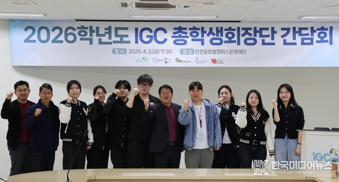 [ 한국미디어뉴스 이원영 기자 ] 인천글로벌캠퍼스운영재단(이하 재단, 대표이사 변주영)이 3일(금), 재단 회의실에서 '2026년 봄학기 IGC 학생회장단 간담회'를 개최하고 학생 중심의 캠퍼스 조성을 위한 본격적인 소통 행보에 나섰다.