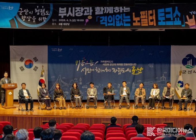 [ 한국미디어뉴스 이종철 기자 ] 군산시는 3일 오후 시청 2층 강당에서 저연차 직원들과 간부 공무원들이 격식 없이 소통하는 ‘부시장과 함께하는 격의 없는 노필터 토크쇼’를 개최했다고 밝혔다.