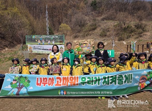 이날 현장에는 경북 영주시와 17개 유아교육기관 유아, 교사, 학부모 등 200여명이 참석해 낙엽송 100본을 정성껏 식재했다. 같은 시간 전국 1,232개 유아교육기관에서도 약 10만 명의 유아들이 나무 심기에 동참했다.