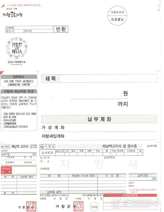 [ 한국미디어뉴스 김홍철 기자 ] 거창군은 고령층 납세자의 가독성과 납부 편의를 높이기 위해 4월부터 큰글씨 체납고지서를 제작해 발송한다고 밝혔다.