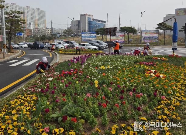 시는 주요 교통섬 6개소와 대형 화분 등에 봄꽃을 배치해 운전자와 보행자 모두가 봄의 정취를 느낄 수 있도록 했다.