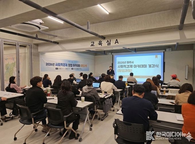 [ 한국미디어뉴스 기자 ] 파주시는 지난 7일 금촌어울림센터에서 '2026년 파주시 사회적경제 창업아카데미(창업과정)' 개강식을 열고, 본격적인 교육에 돌입했다.