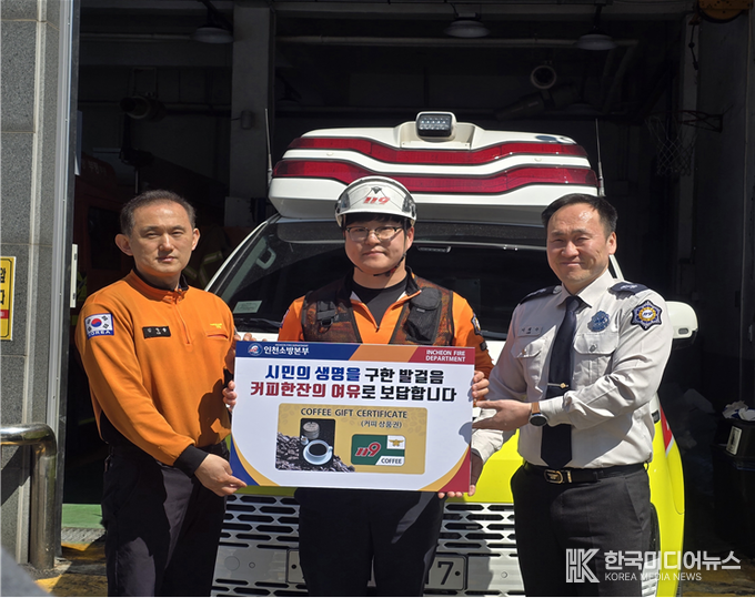 [ 한국미디어뉴스 이원영 기자 ] 인천소방본부(본부장 임원섭)는 현장 구급대원의 사기 진작과 적극적인 구급활동을 독려하기 위해 2026년 3월 이송실적이 우수한 구급대원 상위 3명을 선정해 포상을 실시했다.