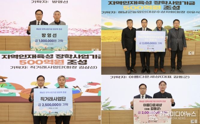 한편 군민들의 정성이 모여 현재 장학사업기금은 꾸준히 확대되고 있으며, 해남군은 2032년까지 500억원 조성을 목표로 기금 확충에 박차를 가하고 있다. 군은 이를 바탕으로 지역의 백년대계를 이끌 인재 육성의 든든한 기반을 마련해 나갈 계획이다.