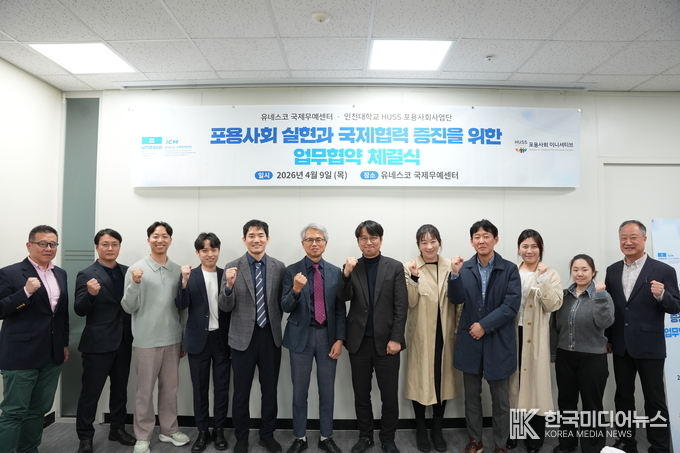[ 한국미디어뉴스 이원영 기자 ] 인천대학교 HUSS 인문사회융합인재양성사업단(포용사회 컨소시엄 총괄단장 옥우석 교수)은 4월 9일 유네스코 국제무예센터와 포용사회 가치 확산 및 국제협력 기반 강화를 위한 업무협약(MOU)을 체결했다.