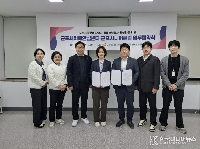 [ 한국미디어뉴스 이보영 기자 ] 군포시치매안심센터는 4월 9일 군포시시니어클럽과 업무협약을 체결하고 노인공익활동 참여자를 대상으로 한 치매선별검사 확대에 나선다고 밝혔다.
