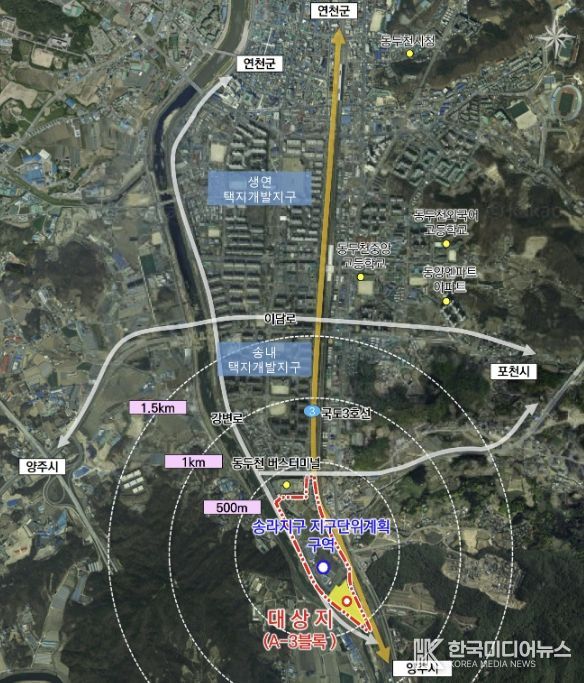 [ 한국미디어뉴스 김서안 기자 ] 동두천시는 송내동 469번지 일원(롯데마트 남측)의 ‘송라지구 지구단위계획구역 및 지구단위계획’에 대해 4월 13일 결정(변경) 고시했다고 밝혔다.