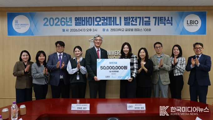 겐트대학교 글로벌캠퍼스는 13일 대회의실에서 한태준 총장과 유민경 엘바이오컴퍼니 대표, 그리고 박지혜 마린유겐트코리아 한국대표 등 관계자가 참석한 가운데 ‘발전기금 기탁식’을 개최했다고 밝혔다. 이번 기탁은 양 기관이 지난해 체결한 업무협약의 실질적 협력 성과로 이루어졌다.