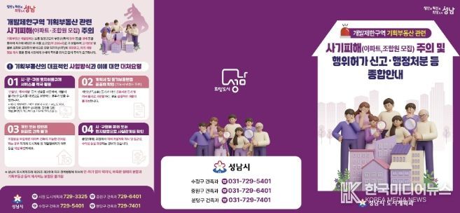[ 한국미디어뉴스 이원영 기자 ] 성남시는 최근 개발이 불가능하거나 제한적인 개발제한구역(그린벨트) 내 토지를 곧 해제될 것처럼 속여 고가에 판매하는 이른바 ‘기획부동산’ 사기가 증가함에 따라 시민 주의를 당부하고, 안내문을 제작·배부한다고 밝혔다.