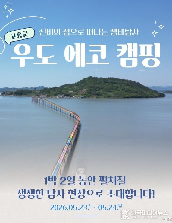 [ 한국미디어뉴스 이종철 기자 ] 고흥군은 오는 5월 23일부터 24일까지 1박 2일간 고흥군 우도 일대에서 ‘신비의 섬으로 떠나는 생태탐사 '우도 에코 캠핑'’을 개최한다고 밝혔다.