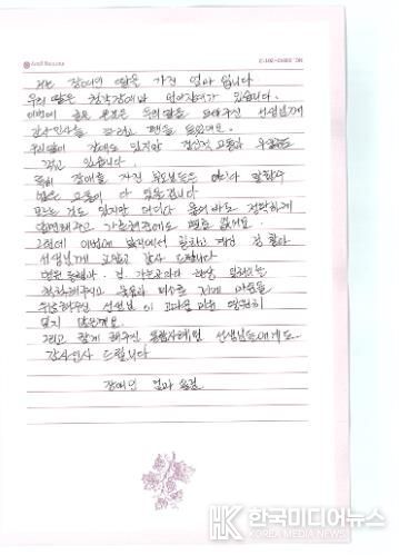 어머니는 편지에서 “청각장애와 언어장애뿐 아니라 정신적 고통까지 겪는 딸을 보며 어디에도 말할 곳이 없어 막막했다”며 “병원 동행부터 행정 절차까지 세심하게 도와주시고, 늘 웃음과 따뜻한 말로 위로해주신 선생님께 깊이 감사드린다”고 전했다.