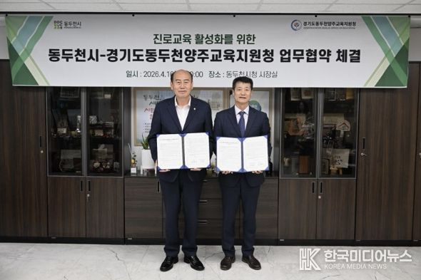 [ 한국미디어뉴스 김서안 기자 ] 동두천시는 지난 16일 동두천양주교육지원청과 ‘진로체험활동 활성화 및 진로센터 운영의 안정적 추진’을 위한 업무협약(MOU)을 재체결했다고 밝혔다.