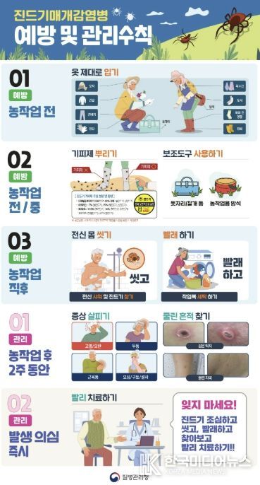 아울러 마을 방송, 안내문, 홍보물 배부 등을 통해 진드기 매개 감염병 예방 수칙을 지속적으로 안내할 예정이다.