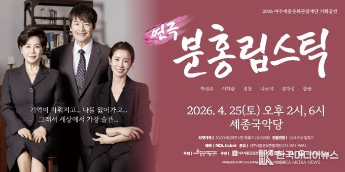 [ 한국미디어뉴스 이원영 기자 ] 여주세종문화관광재단이 오는 4월 25일, 예술경영지원센터의 공모사업인 '공연예술 지역 유통지원 사업'의 일환으로 베테랑 배우들이 참여한 창작 연극‘분홍립스틱’을 세종국악당에서 개최한다.