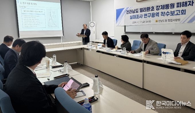 [ 한국미디어뉴스 이종철 기자 ] 전라남도는 일제 강제 동원 피해 진상규명과 국가 차원의 보상지원 건의를 위해 17일 도청에서 밀리환초 강제 동원 피해자 실태조사 연구용역 착수보고회를 개최했다.