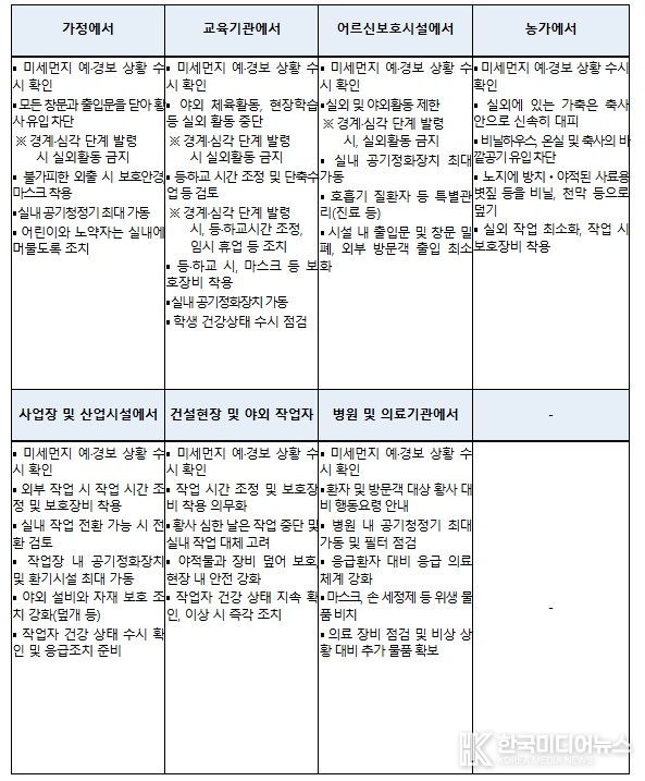 기후에너지환경부는 황사 위기경보 ‘관심’ 단계가 발령됨에 따라 관계 기관과 해당 지방정부에 곧바로 상황을 전파하고, ‘황사 재난 안내서(매뉴얼)’에 따라 철저하게 대응할 것을 요청했다.