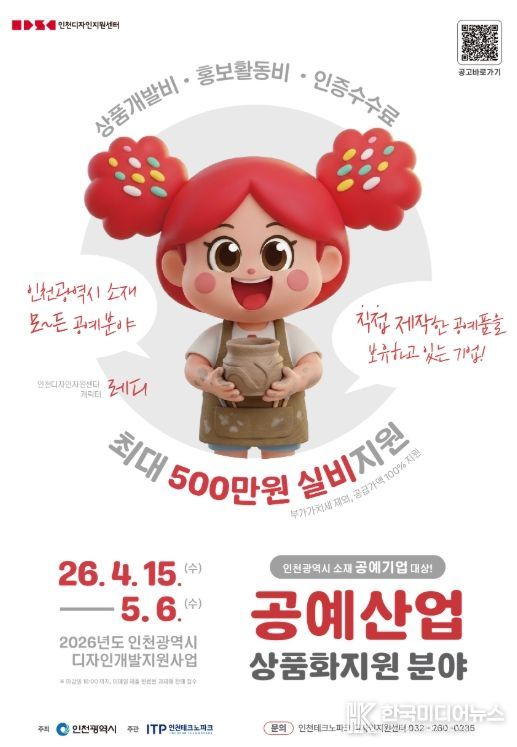 [ 한국미디어뉴스 이원영 기자 ] 인천테크노파크(인천TP)는 인천 공예기업의 상품 경쟁력 강화를 위해 ‘2026년도 인천광역시 공예산업 상품화 지원사업’ 참여기업을 오는 5월 6일까지 모집한다.
