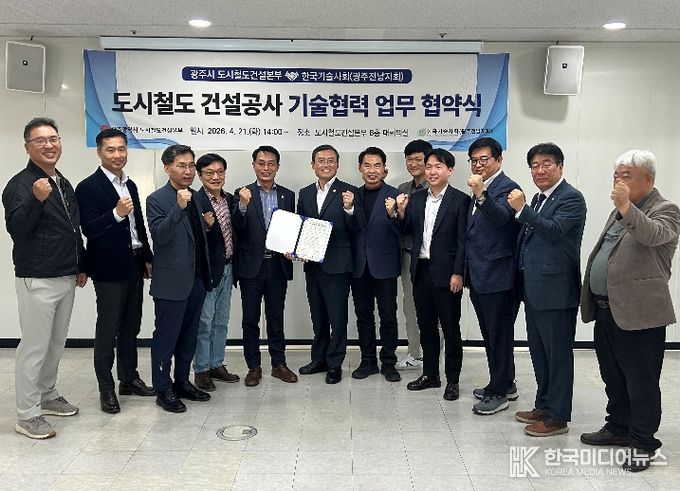 [ 한국미디어뉴스 이종철 기자 ] 광주광역시 도시철도건설본부는 21일 본부 8층 대회의실에서 한국기술사회 광주·전남지회와 ‘광주시 도시철도 2호선 건설공사 기술협력 업무협약’을 체결했다.
