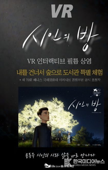 ‘시인의 방’은 윤동주 시인의 삶과 문학세계를 가상현실로 구현한 몰입형 콘텐츠로, 국가유산청과 국가유산진흥원이 배급했다. 이용자는 가상현실 기기를 착용하고 친필 원고와 시 낭송을 바탕으로 구성된 장면을 체험하며, 시 세계를 더욱 입체적으로 경험할 수 있다.
