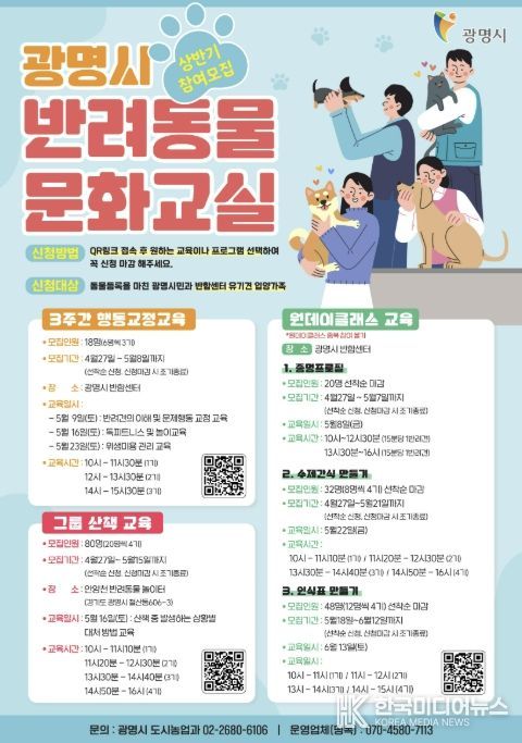 [ 한국미디어뉴스 이원영 기자 ] 광명시가 반려인과 반려견의 행복한 일상을 위한 맞춤형 교육 프로그램을 운영한다.