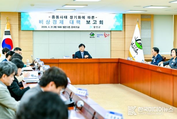 [ 한국미디어뉴스 김홍철 기자 ] 함안군은 중동전쟁 장기화에 따른 고유가와 원자재 수급 불안에 대응하기 위해 지난 21일 군청 중회의실에서 ‘비상경제 대책 보고회’를 개최하고 전방위 비상경제 대응체계를 가동했다고 밝혔다.