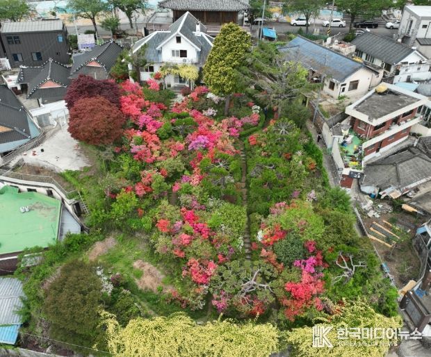 크림빛 목향장미와 꽃분홍색 철쭉이 어우러져 정원을 가득 채우며 도심 속 봄 정취를 느낄 수 있는 명소로 주목받고 있다.