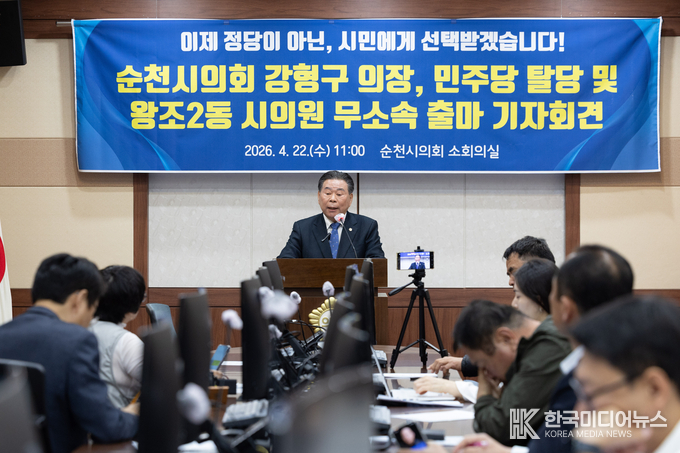 순천시의회 강형구 의장은 22일 기자회견을 열고 더불어민주당을 탈당하고 왕조2동 시의원으로 무소속 출마를 공식화했다. 4선인 강 의장은 22년간의 정치 활동을 마치고 민주당을 떠나게 됐다고 밝혔다. 그는 민주당이 예비후보 적격 판정을 내린 후에도 경선 기회 없이 일방적으로 배제했다며 공천 과정에 대해 비판했다.