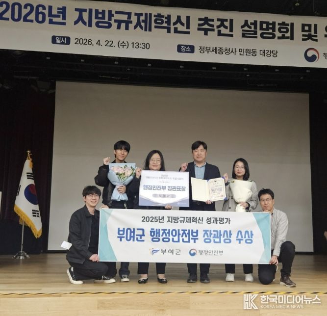 [ 한국미디어뉴스 이원영 기자 ] 충남 부여군은 행정안전부 주관‘2025 지방자치단체 규제혁신 추진 성과평가’에서 행정안전부 장관 표창을 받았다고 23일 밝혔다.