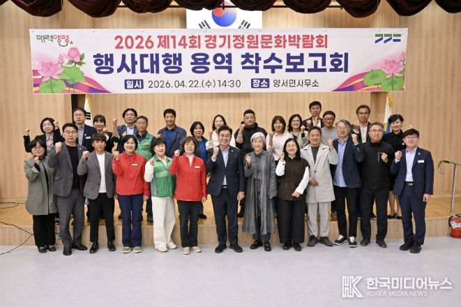 [ 한국미디어뉴스 기자 ] 양평군은 오는 10월 개최 예정인 ‘2026 제14회 경기정원문화박람회’의 성공적인 추진을 위해 지난 22일 양서면사무소에서 행사 대행 용역 착수보고회를 개최했다고 밝혔다.