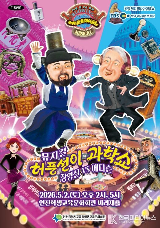 [ 한국미디어뉴스 이원영 기자 ] 인천광역시교육청학생교육문화회관은 5월 2일 대공연장 싸리재홀에서, 과학 체험 버라이어티 쇼 ‘허풍선이 과학쇼: 장영실 VS 에디슨’ 기획 공연을 개최한다.