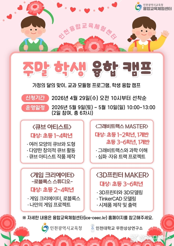 최수봉 인천대학교 무한상상연구소 소장(물리학과 교수)은 “이번 캠프는 단순 체험을 넘어 학생들이 교과 지식을 실생활과 연결하고, 스스로 생각해 결과물을 만들어 보는 과정을 경험할 수 있도록 기획했다”며 “가정의 달을 맞아 아이들에게 즐겁고 의미 있는 배움의 시간이 되길 기대한다”고 말했다.