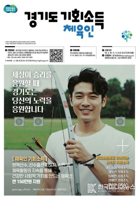 [ 한국미디어뉴스 기자 ] 파주시는 지난 6일부터 시작한 '2026년 경기도(파주시) 체육인 기회소득’신청을 오는 5월 11일까지 받는다.