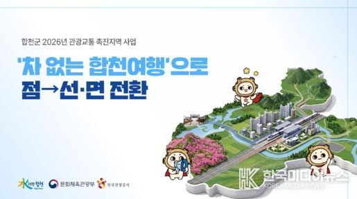 [ 한국미디어뉴스 김홍철 기자 ] 합천군은 문화체육관광부와 한국관광공사가 주관하는 ‘2026년 관광교통 촉진 지역 공모사업’에 최종 선정돼 총사업비 8억 원을 확보했다.