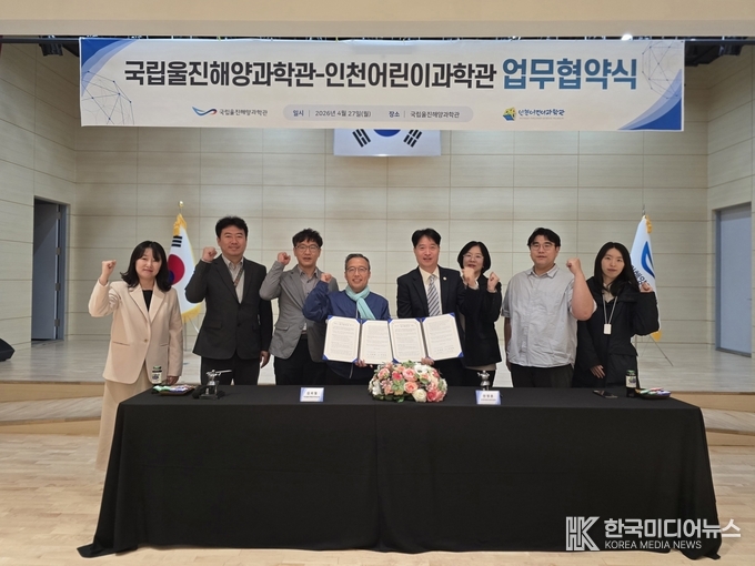 [ 한국미디어뉴스 이원영 기자 ] 공동연구 순회전’ 성공적 개최 이어 전략적 파트너십 강화 국립울진해양과학관(관장 김외철, 이하 해양과학관)과 인천어린이과학관(관 장 안영춘)이 미래 과학인재양성과 해양과학 문화 확산을 위한 업무협약 (MOU)을 27일 체결했다.