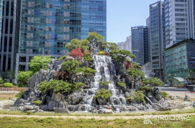 총 1,685㎡ 규모의 교통섬에는 폭포와 연못을 포함한 수경시설이 새롭게 들어섰으며, 차량 통행이 잦은 교차로에 자연 요소를 더해 삭막했던 공간을 생기 있는 녹색 경관으로 바꾸는 데 의미를 담았다.