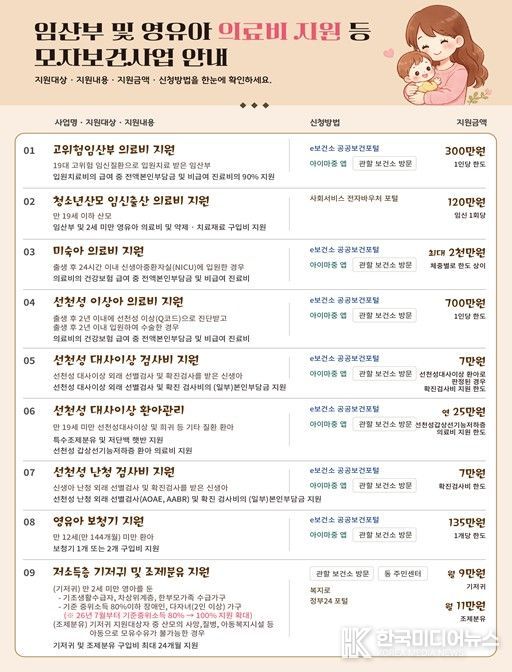 조영창 서울시 시민건강국장은 “모자보건사업은 임산부와 영유아 가정이 꼭 필요한 시기에 실질적인 도움을 받을 수 있도록 지원하는 중요한 정책”이라며, “출산과 양육 과정에서 겪는 경제적·의료적 부담을 덜 수 있도록 임신부터 출산 이후 영유아기까지 필요한 지원을 더욱 촘촘하게 이어가겠다”고 말했다.