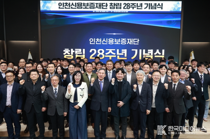 [ 한국미디어뉴스 이원영 기자 ] 인천신용보증재단(이사장 이부현, 이하 “재단”)은 4월 28일 재단 본점에서 재단 임직원이 참석한 가운데 창립 28주년 기념식을 개최했다고 밝혔다. 이날 행사는 간담회, 업무유공자 표창, 기념사, 기념촬영 등으로 진행됐다.