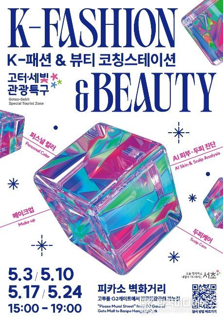 [ 한국미디어뉴스 이보영 기자 ] 서울 서초구는 오는 5월 3일부터 24일까지 매주 일요일 15시~19시, 고속터미널역과 반포한강공원을 연결하는 지하 공공보행통로 ‘피카소 벽화거리’에서 ‘K-패션&뷰티 코칭스테이션’을 운영한다고 밝혔다.