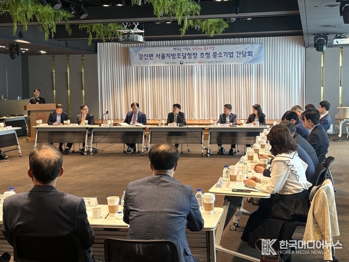 [ 한국미디어뉴스 이원영 기자 ] 강신면 서울지방조달청장(위쪽 열 왼쪽부터 네 번째)은 4월 29일(수) 중소기업 DMC타워에서 중소기업중앙회 서울지역본부(서울중소기업회장 박종석) 주관으로 열린 중소기업인 간담회에 참석해, 공공조달 관련 중소기업계의 애로·건의사항을 청취하고 판로 지원 방안에 대한 의견을 교환했다.