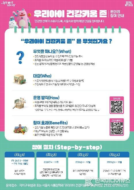 구는 어린이기호식품 전담관리원을 활용해 어린이보호구역 내 편의점 등 약 100개소를 방문해 참여 업소를 모집하고 있으며, 참여 업소에는 건강식품 우선 진열과 안내 표지물 설치를 지원할 계획이다.